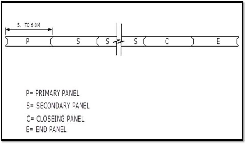 - The Primary panel is the starting panel, which is cast with two nos of stop end in place. These panels are logically placed to suit construction schedule. The panel proceeds in both directions from the primary panel using secondary panels, which are cast with a single stop end in place. The closing panel is the final panel, which is cast after the removal of the both stop end.