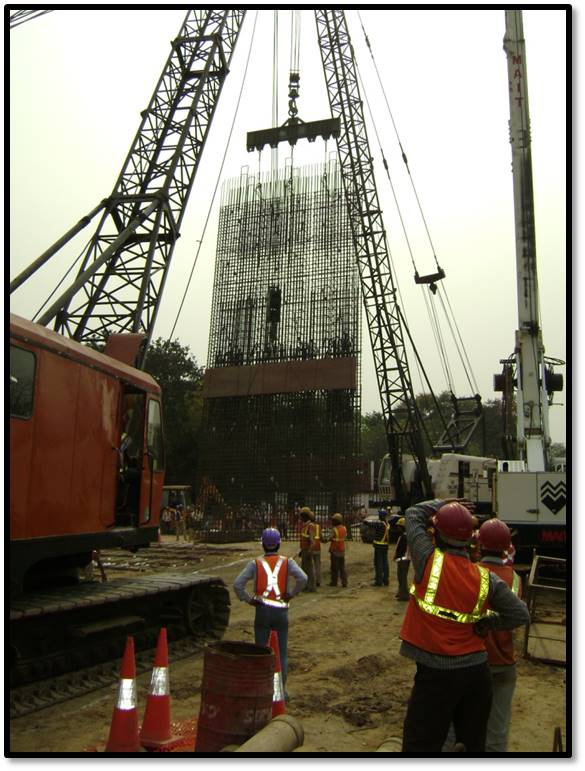 - The specified reinforcement cage will be fabricated on the ground and welded depending upon the site condition and equipments availability the cage may be fabricated and lowered in two or four parts.